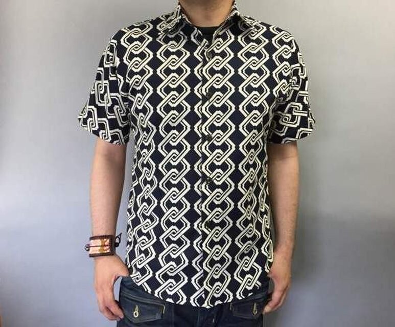 新作手作り半袖和柄シャツ(吉原つなぎ紋様)