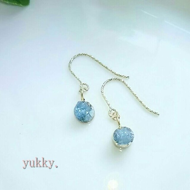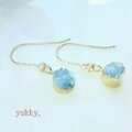 ドゥルージークォーツ(淡ブルー)14Kgfグリッターピアス