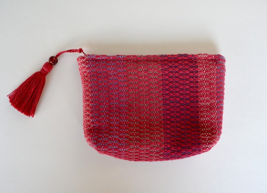 伝統的な柄を元に、オリジナルな要素を加え織ったポーチです。
