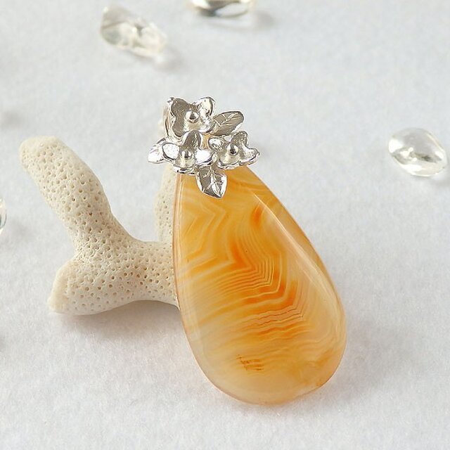 繊細な縞模様が美しいアフリカ産のアゲート(縞瑪瑙)に小花飾りのバチカンを付けた可愛らしいンダントに仕上げました。