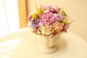 プリザーブドと退色しにくいドライフラワーをメインに使用していますのでこの色合いは数年長持ちいたします。