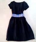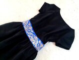 受注製作★マドモアゼル・ワンピその12★タフタ★ブルー・アラビック・ボーダー★