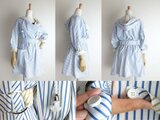 白地にマスタードストライプ面とブルーストライプ面のリバーシブルコットンです。