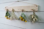 自家製ドライフラワーを古材風に加工した板にセットしました。