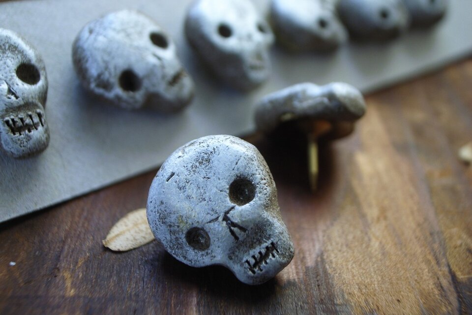 オーブン陶土で作った石のようなガイコツ。