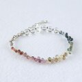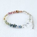 色とりどりのサファイアブリオレットビーズを水晶と組み合わせた華奢な印象のブレスレットに仕上げました。