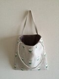サイズ: たて22cm ・ 横21cm ・ 持ち手 幅1cm 長さ31cm ・ 内側に小さいポケットが付いてます。