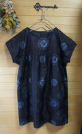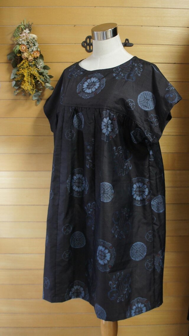 大島紬 青丸紋 ヨーク切り替えギャザーOP