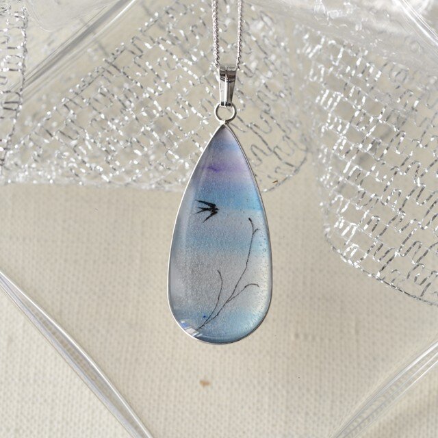 手描きのオリジナルイラストを樹脂で閉じ込めたペンダントです。