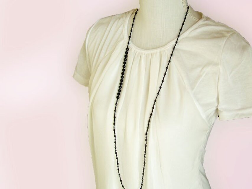 オニキス、スワロ、チェコビーズを使ったロングネックレスですが、いろんなファッションに合わせやすい、シンプルだけと上品なロングネックレス