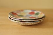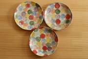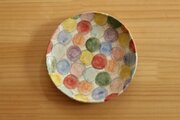 信楽の白土に白化粧を施しカラフルドットを描きました。