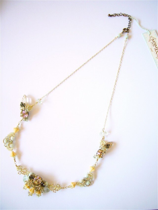 淡いグリーンが魅惑的な、アンティークカラーのネックレスです。