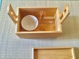 茶道具を入れる箱です。持ち運びしやすいように持ち手が付いてます。