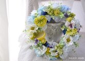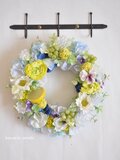 シトラス(柑橘系)の清涼感に ブルーやパープルのアクセントをきかせて、フレッシュなイメージのリースに仕上げました。