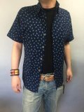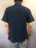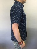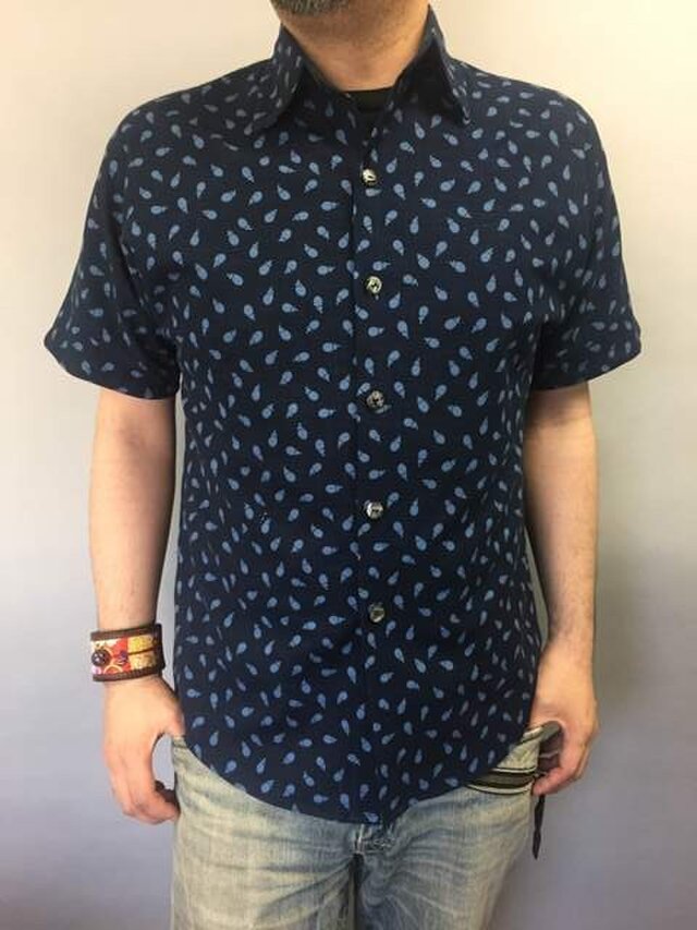 半袖和柄ムラ糸藍染調シャツ(茄子柄)