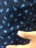 新作手作り半袖和柄ムラ糸藍染調シャツ(茄子柄)