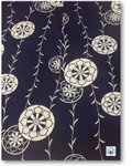 紺地にオフ白で変わり源氏車と柳が染められています。