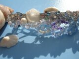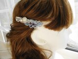浜辺に寄せる波に揺れる貝殻のようなイメージのバレッタです。夏の日差しの中キラキラ光る水しぶきを思い出しながら作りました。ワイヤーにアクリルビーズと貝殻,パールをランダムに通してレジンで固めてあります。