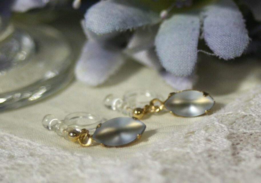 ヴィンテージビジュー ノンホールピアス ブルーフロスト