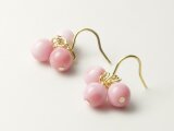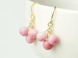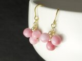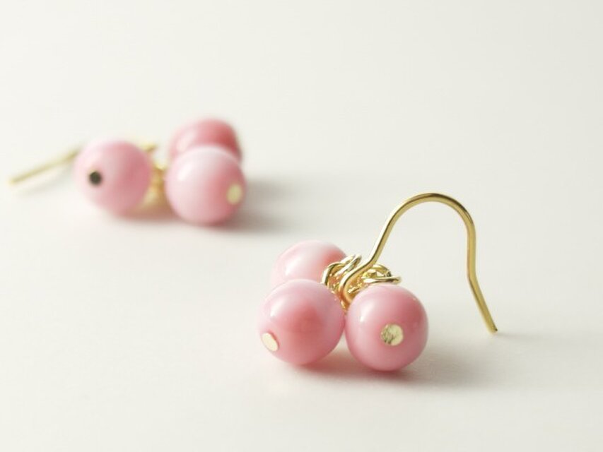 チェコ・ラウンドビーズの3粒ピアス さくらいろ