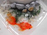 陶器のトレイに樹脂やジオラマ素材で小さな泉を作りました。