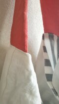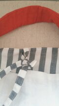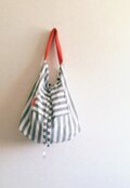 真っ白のリネンと、ストライプ生地を使ったシンプルなワンハンドルのリバーシブルbagです。持ち手は天日干しリネンの赤で色遊びしてみました。