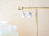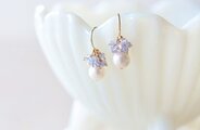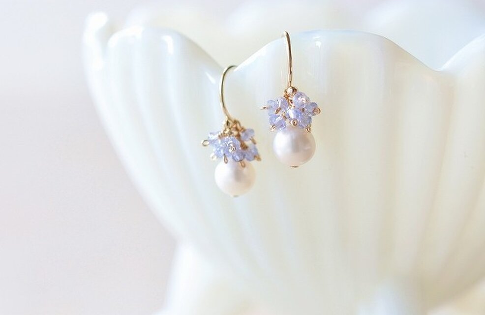 淡水パールに小さなタンザナイトを飾り付けてピアスにしました。