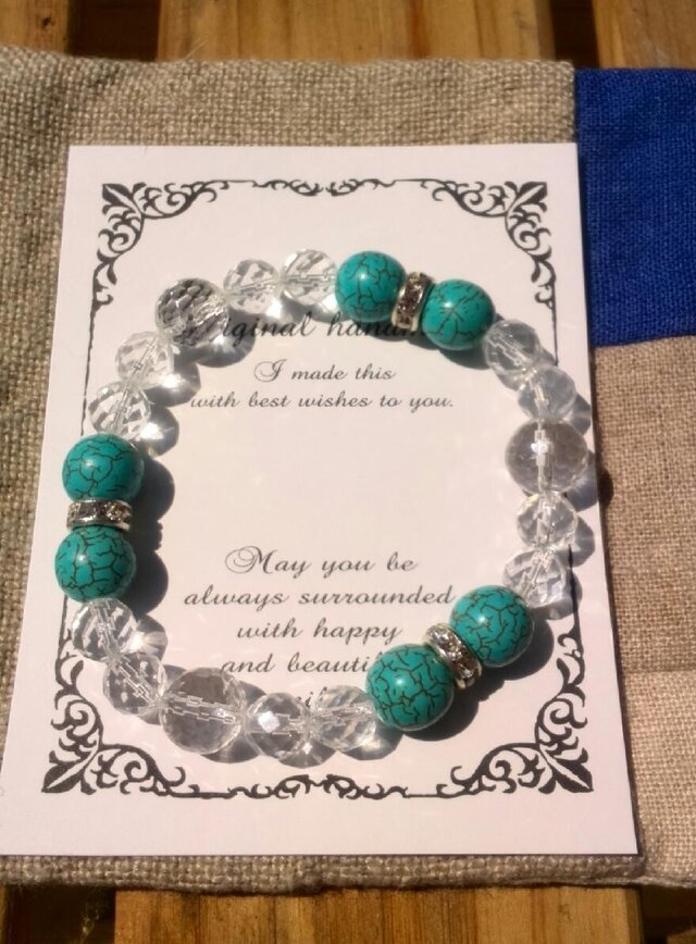 爆発したお花のような模様がターコイズについてます♪多面体の水晶との組合せです♪旅のお守りにしてください!
