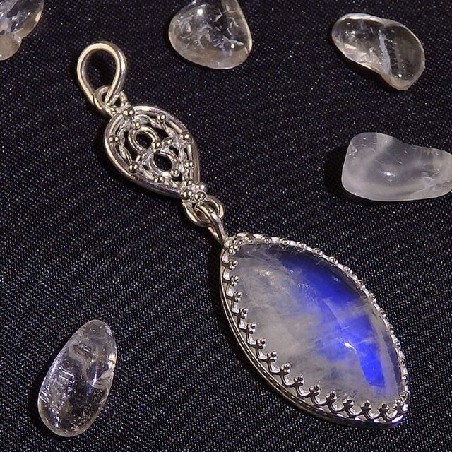 ホワイトラブラドライトのペンダント(マーキス)