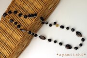曇りのない漆黒の石、オニキスという天然石を使って作ったネックレスです。