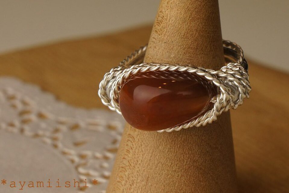 マダガスカル・カーネリアンをワイヤーで巻いてリングを作りました。