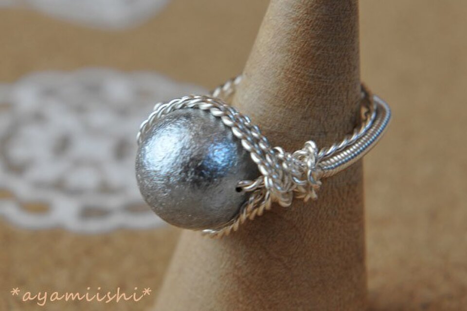 ※ラウンドパールにハンドメイドのワイヤーパーツを組み合わせていますので、正確にサイズを測ることが出来ません。予めご了承ください。