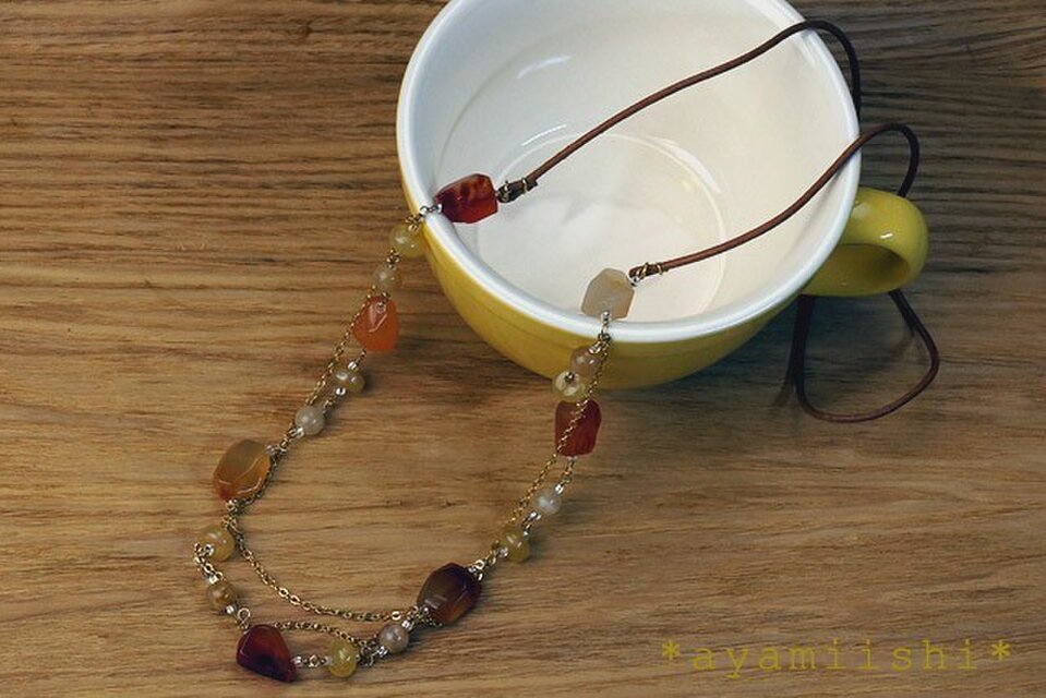半透明で柔らかな光沢を持つ天然石、カーネリアンを使ってネックレスを作りました。