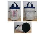 8号帆布(ナスコン)、コットンニット(白×ネイビーボーダー)、底:ビニールコーティング生地(英字柄)