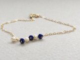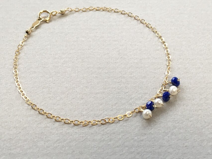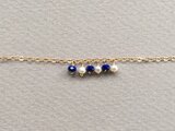 ボタンカットのラピスラズリと淡水パールはチェーンに留めてあるのでシャラシャラっと動きます。