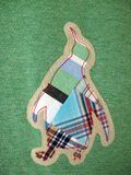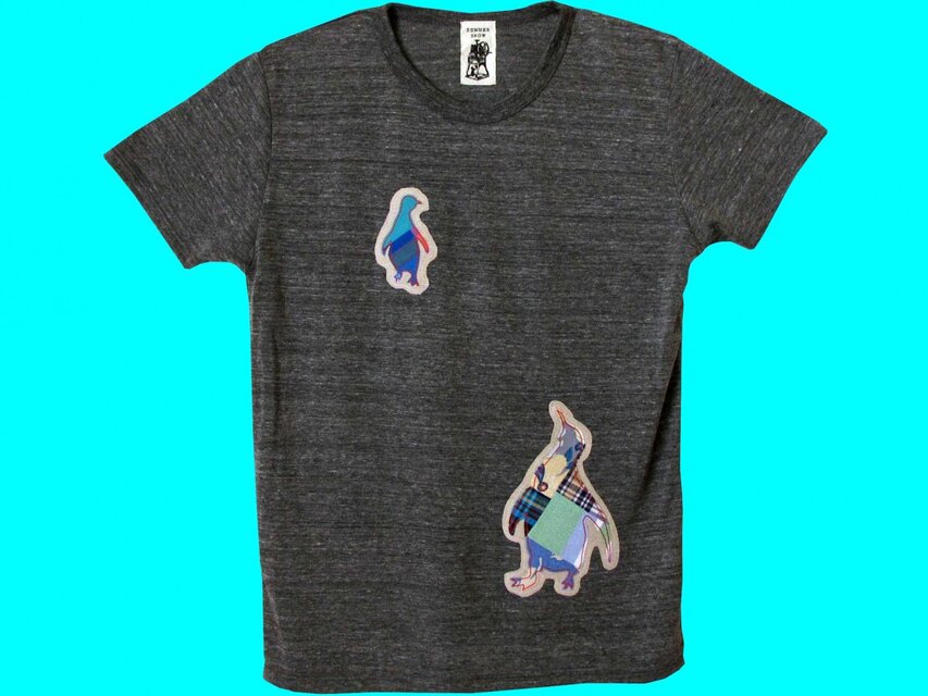 親子のペンギンがTシャツの上下にパッチワークされています。