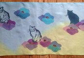 一枚一枚、筆でフリーハンドで描き染めています。