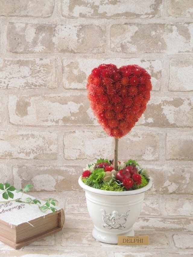 ドライフラワーの千日紅の中でも赤い『ストロベリーフィールズ』を使用したトピアリーです。