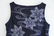 流水に花模様の浴衣地でノースリーブワンピースを作りました。