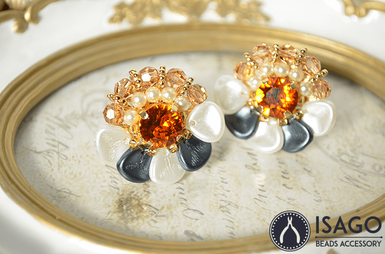 スワロフスキーエレメントやチェコビーズを使用したイヤークリップです。