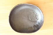 信楽の白土に鉄釉を施し漆黒に仕上げたオーバル皿です。
