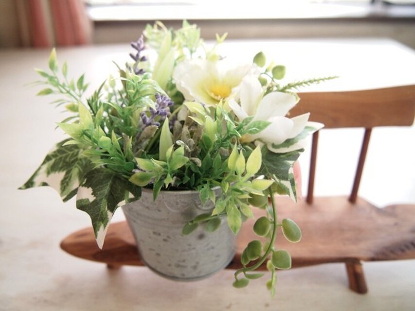 こんなナチュラルなグリーンアレンジを飾れば可愛いくてにっこり癒されます。