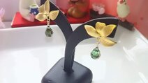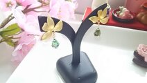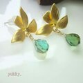 チェコガラスをカトレアのポストピアスにぶら下げました。(*^-^*)