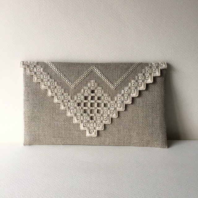 蓋の部分をハーダンガー刺繍で仕上げています。