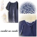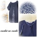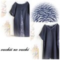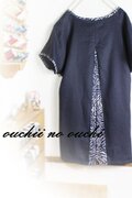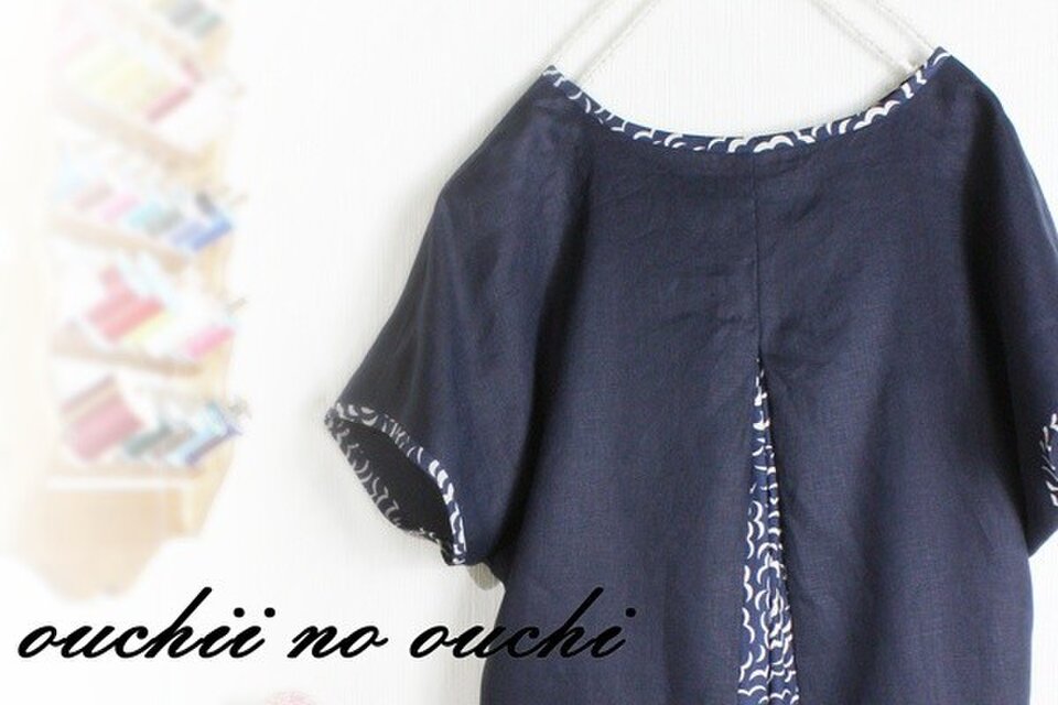 後ろ切り替え部分にリバティタナローンのPuffパフ(ネイビー地にグレージュ)をいれたドルマンタイプのチュニックワンピです。