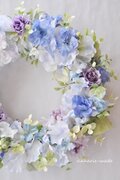 花びらのふんわりとした lavender blueカラーのリースで 清涼なひと夏を。