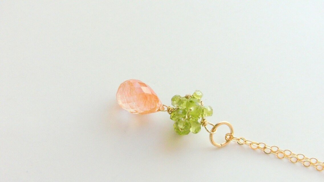 *14KGF オレンジルチルとペリドットのネックレスチャーム