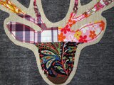 Tシャツの中央に鹿の頭がパッチワークされています。