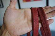 さまざまな種類の生地を使用しています。いくつか色落ちする素材もございます。(革部分など)