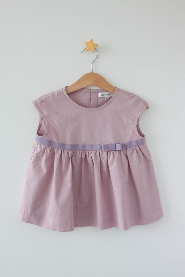 ピンクに近いラベンダー色のフレンチブラウス。